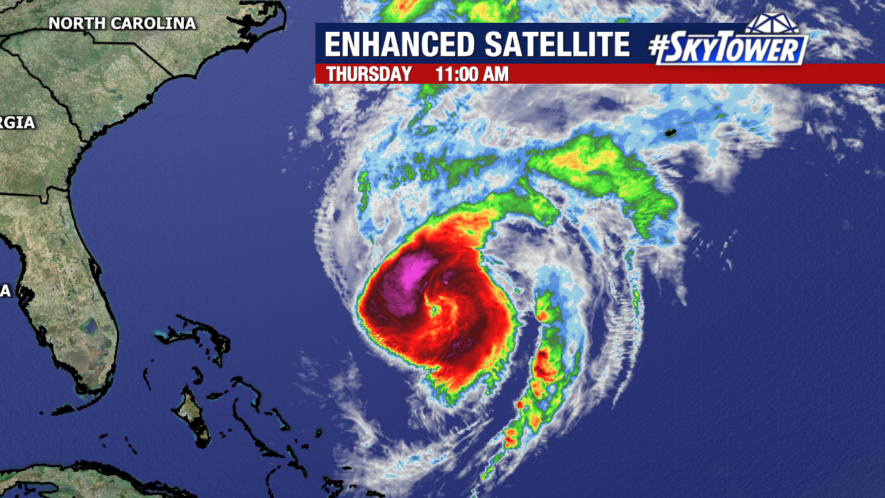 Hurricane-force winds go out 30 miles from the storm’s center, which will pass near/over the central and SE Bahamas with hurricane conditions starting today, lasting into Thursday.