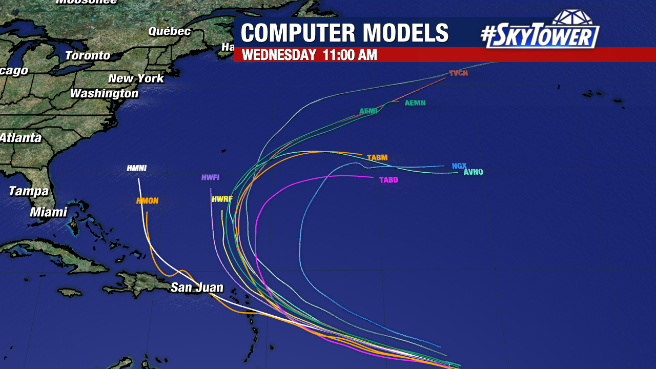 Many models steer the storm near/east of Bermuda but some take a southern track with more implications for the islands.