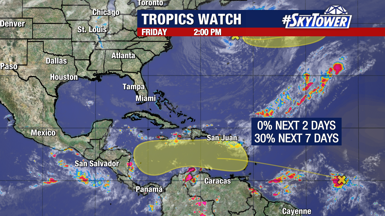 Meanwhile, chances are increasing that a tropical wave will eventually enter the Caribbean, possibly becoming a named storm late this weekend or early next week. The National Hurricane Center has increased its odds of development within the next week to 30%.