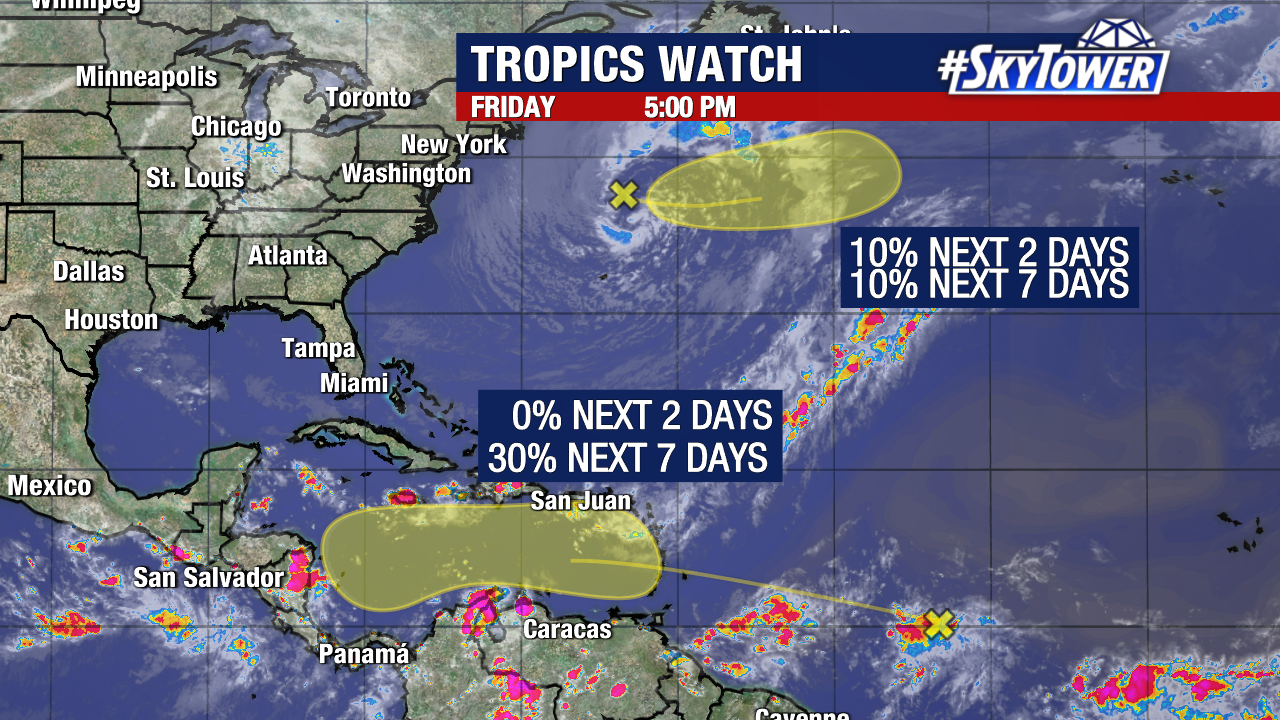 We’re currently tracking two disturbances in the Atlantic for development.
