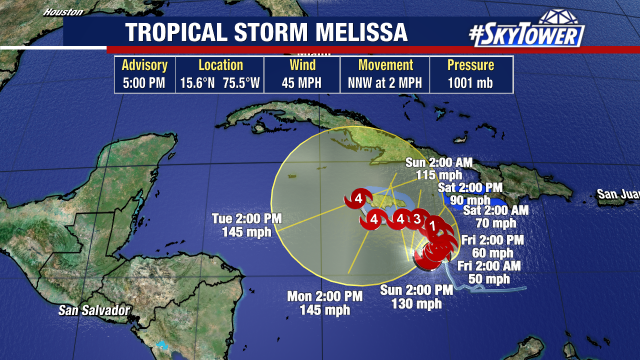 Tropical Storm Melissa is now expected to become a major hurricane in the Caribbean by the end of this weekend. It is the only active storm in the Atlantic at this time.
