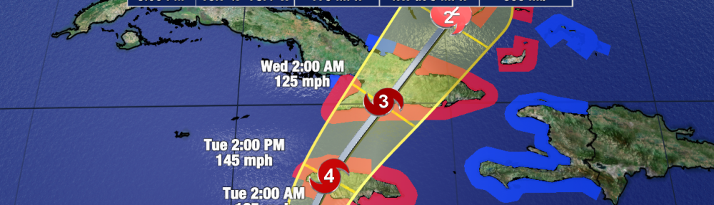 The projected track is just awful. A Category 5 hurricane making landfall in Jamaica late Monday night or Tuesday morning.