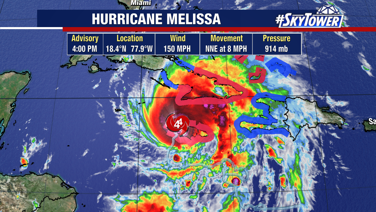 Melissa has been interacting with Jamaica’s mountainous terrain since landfall, which has helped lessen winds and pressure. Winds are currently sustained at 150 mph with a 914 mb pressure.