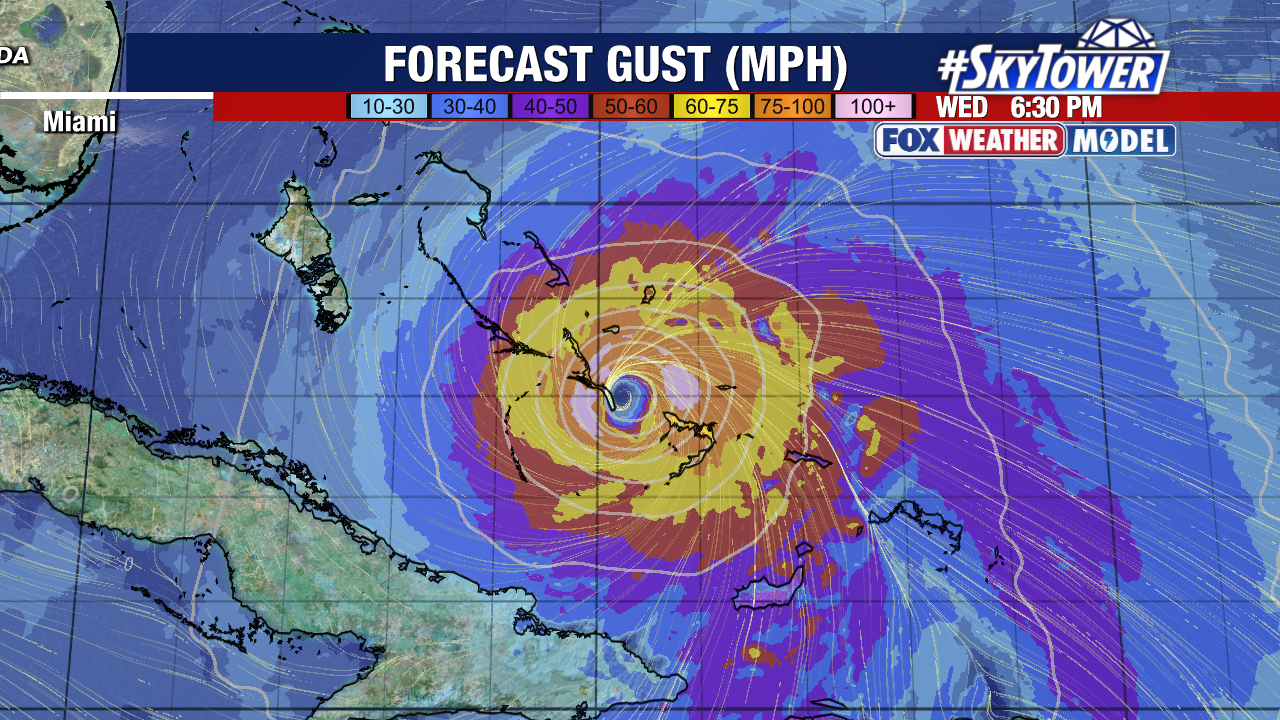 Hurricane-force winds go out 30 miles from the storm’s center, which will pass near/over the central and SE Bahamas with hurricane conditions starting today, lasting into Thursday.