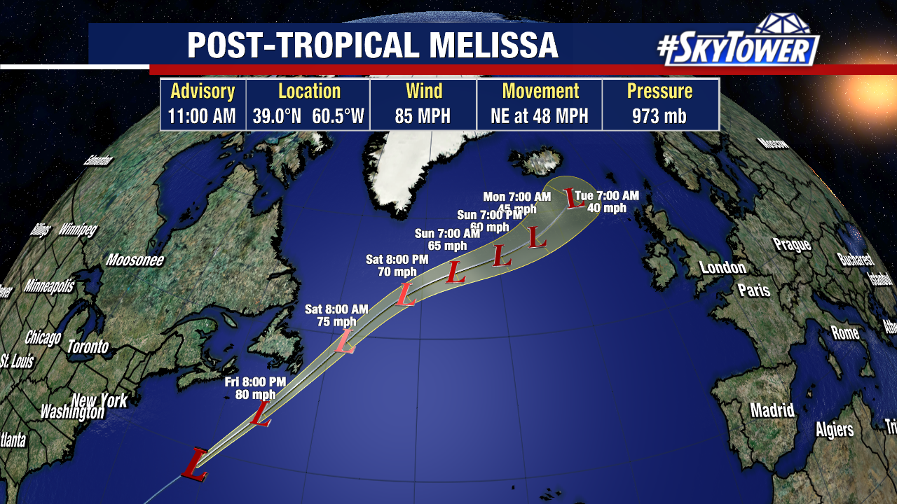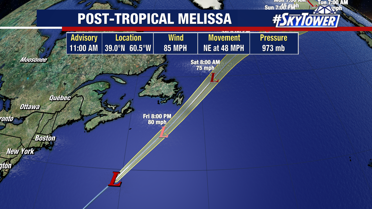 Newfoundland is no longer included within Melissa’s forecast cone. Impacts will still extend well outside this cone.