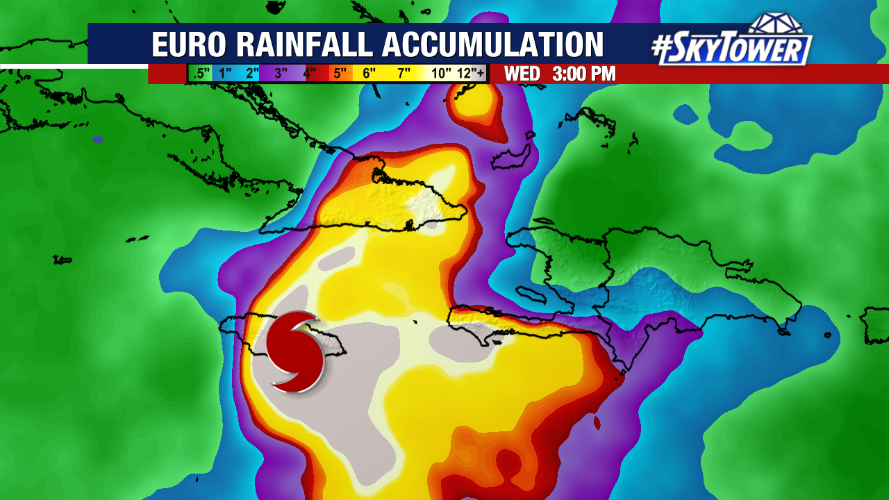 Rainfall of 15 to 30″ is forecast for portions of Jamaica and Haiti into Wednesday. Eastern Cuba will likely get 6-12″ of rain, with isolated totals up to 18″.